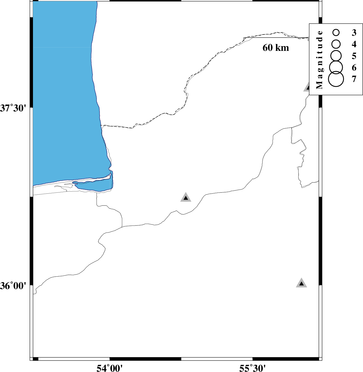 2017/03/16 | 00:48:25.7 | 04:18:25.7 | 37.505 | 55.876 | 16 | ML:3.2 | Golestan Province, 37 km North-East of Kalaleh | ||