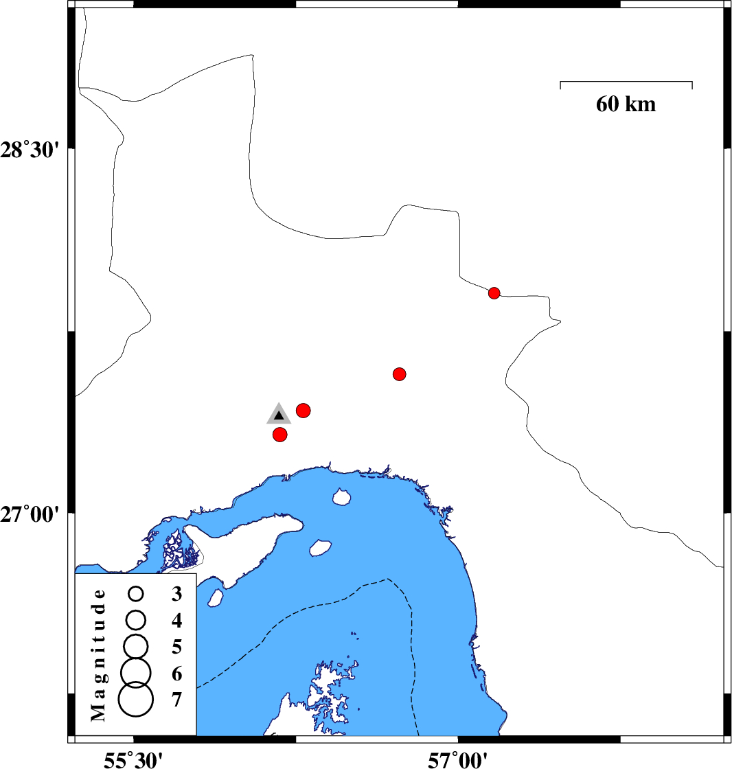 2017/11/06 | 17:14:42.4 | 20:44:42.4 | 27.324 | 56.176 | 14 | ML:3 | Hormozgan Province, 19 km North-West of Bandar-e abbas |