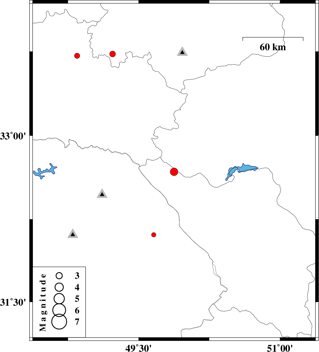 | 2017/11/12 | 19:20:09.5 | 22:50:09.5 | 33.728 | 49.223 | 6 | ML:2.8 | Markazi Province, 28 km South-West of Shazand | ||