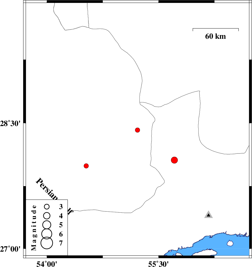 2017/11/27 | 23:01:53.4 | 02:31:53.4 | 28.418 | 55.217 | 14 | ML:2.8 | Fars Province, 68 km North-West of Hajiabad | ||