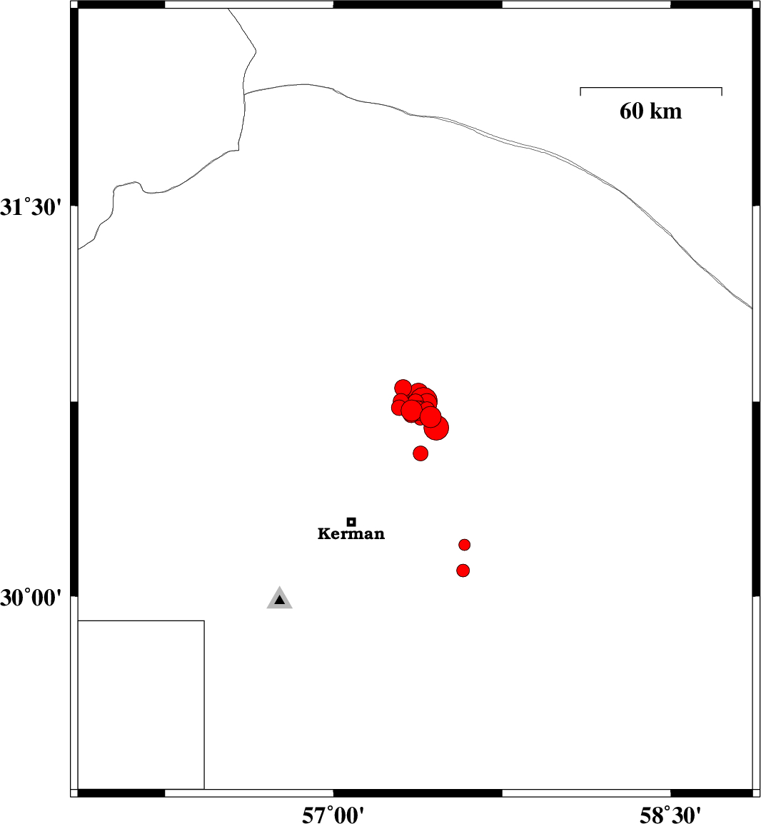 2017/12/01 05:12:43.2 08:42:43.2 30.55257.38714 ML:2.9 Kerman Province, 42 km North-East of Kerman