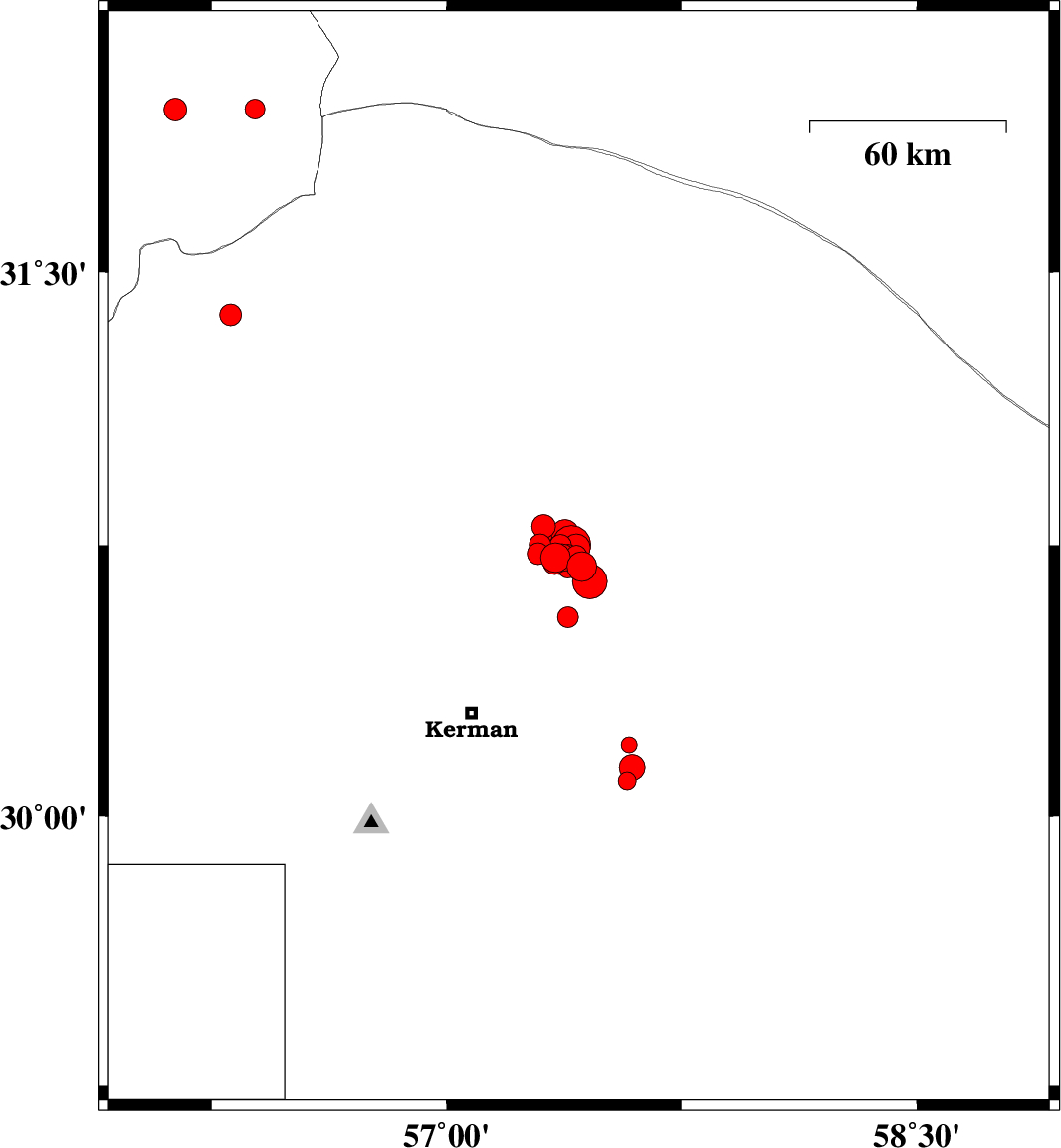 2017/12/01 05:12:43.2 08:42:43.2 30.55257.38714 ML:2.9 Kerman Province, 42 km North-East of Kerman