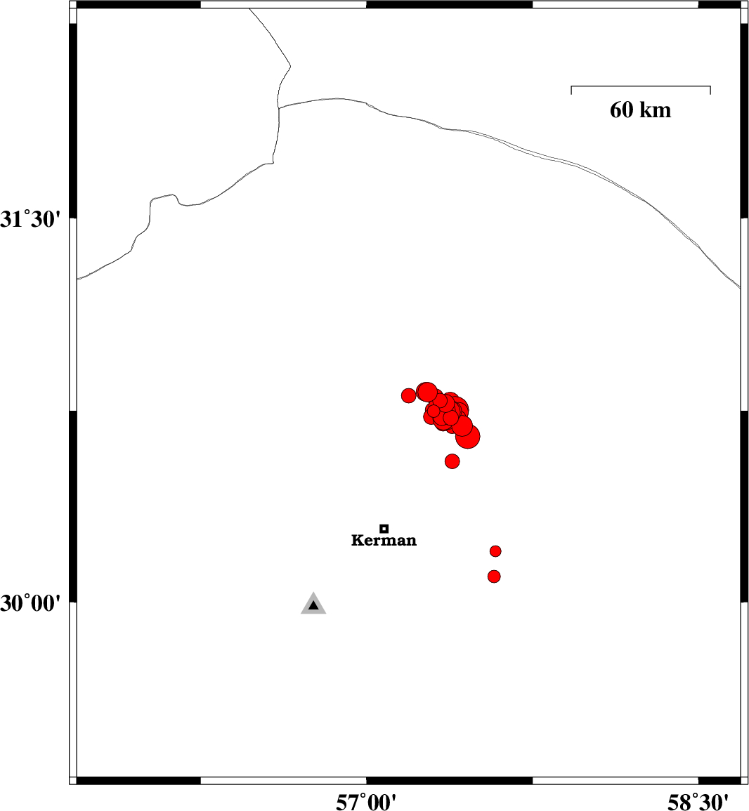 2017/12/01 05:12:43.2 08:42:43.2 30.55257.38714 ML:2.9 Kerman Province, 42 km North-East of Kerman