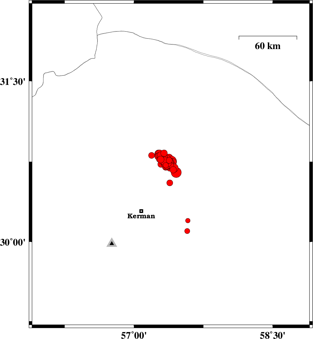 2017/12/02 01:03:30.3 04:33:30.3 30.74557.32815 ML:3.7 Kerman Province, 56 km North-East of Kerman