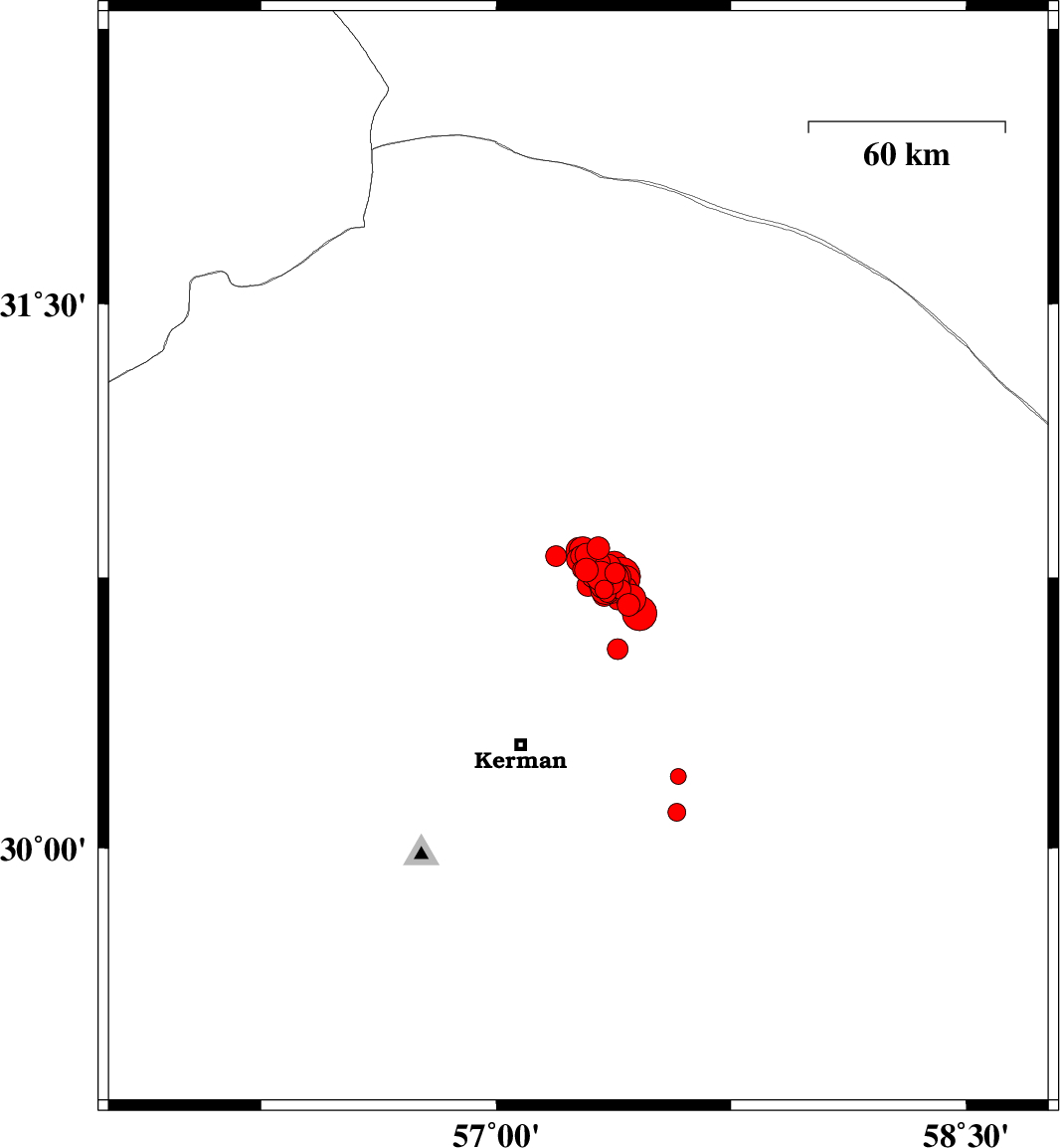 2017/12/01 03:35:00.5 07:05:00.5 30.75257.39916 ML:5.5 Kerman Province, 60 km North-East of Kerman