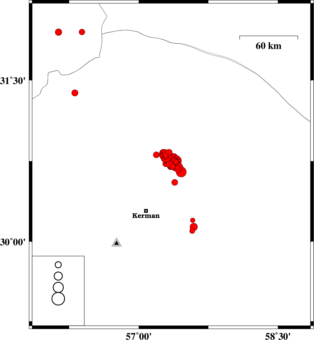 2017/12/04 02:50:05.5 06:20:05.5 30.70857.35118 ML:2.7 Kerman Province, 53 km North-East of Kerman