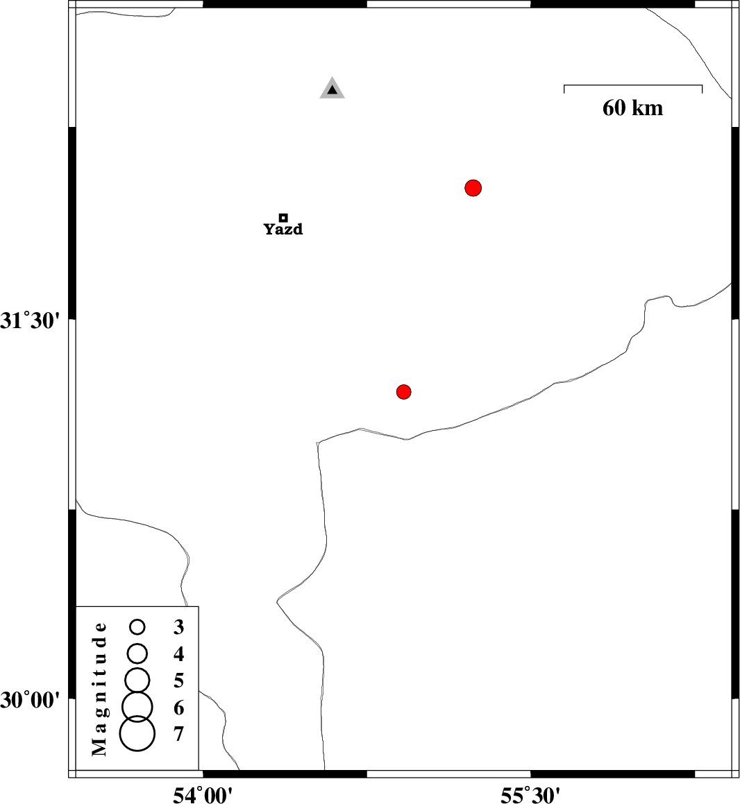 | 2017/11/29 | 18:17:28.4 | 21:47:28.4 | 31.213 | 54.918 | 14 | ML:2.9 | Yazd Province, 61 km South-East of Mehriz | ||