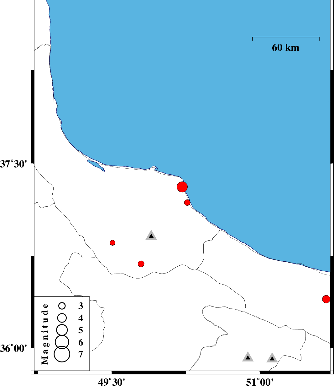 | 2017/12/05 | 15:27:16.2 | 18:57:16.2 | 37.311 | 50.214 | 23 | ML:4.8 | Gilan Province, 14 km North of Langarud | ||