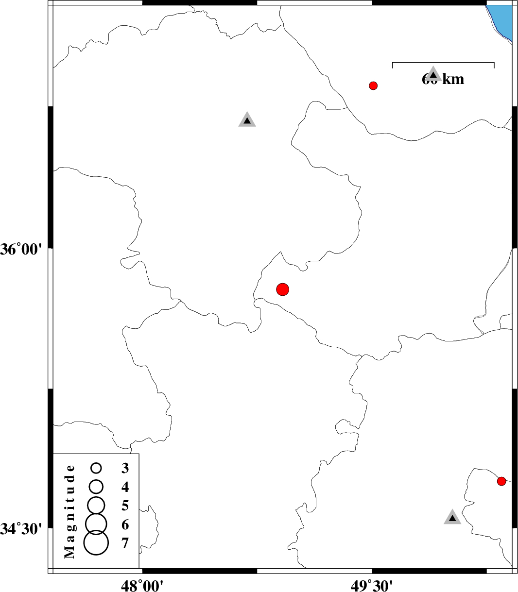 | 2017/12/11 | 12:42:49.1 | 16:12:49.1 | 35.78 | 48.916 | 14 | ML:3.6 | Ghazvin Province, 45 km North-West of Razan | ||