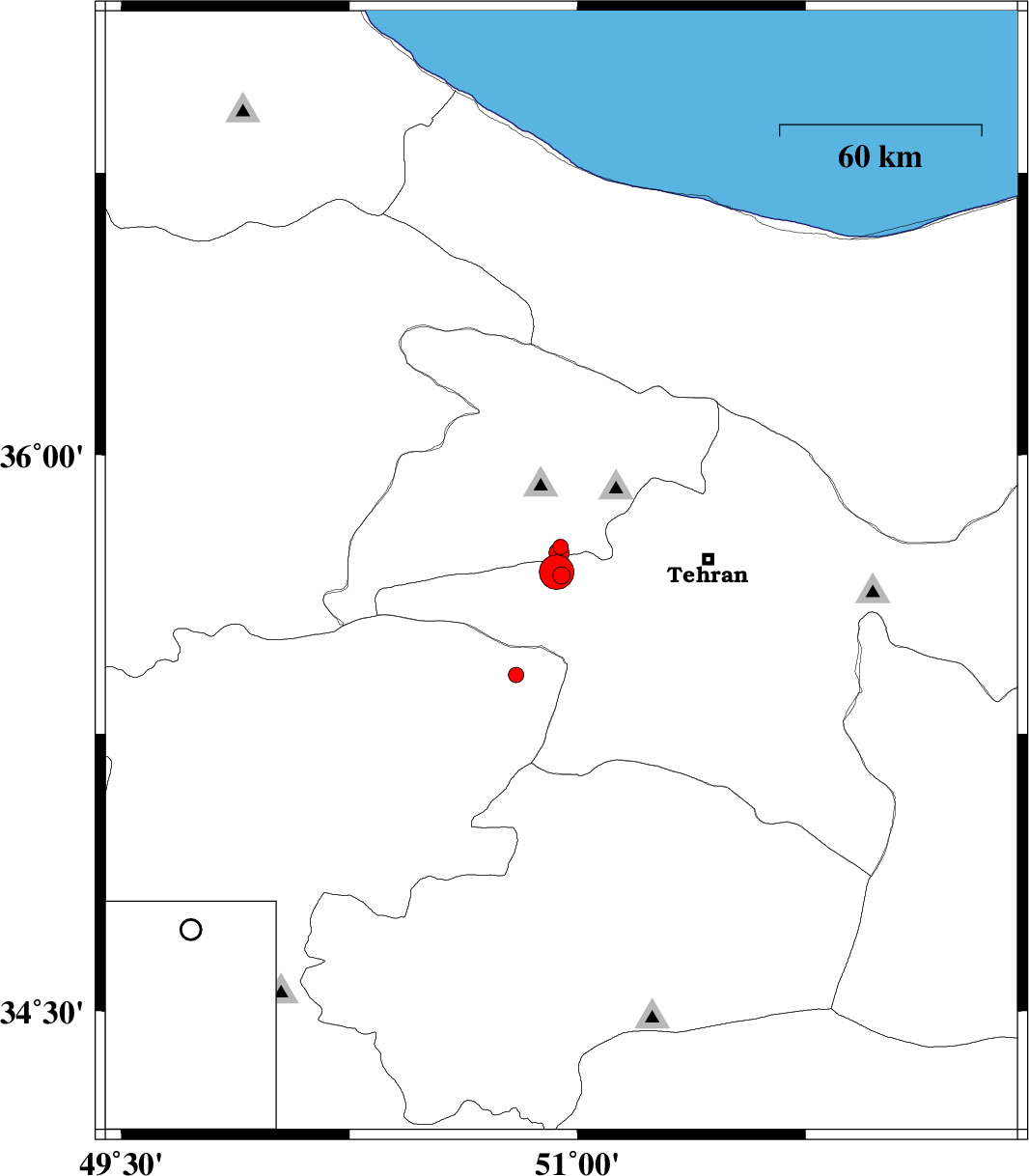 | 2017/12/20 | 19:57:37.3 | 23:27:37.3 | 35.686 | 50.932 | 14 | ML:5.1 | Tehran Province, 13 km South of Karaj | ||