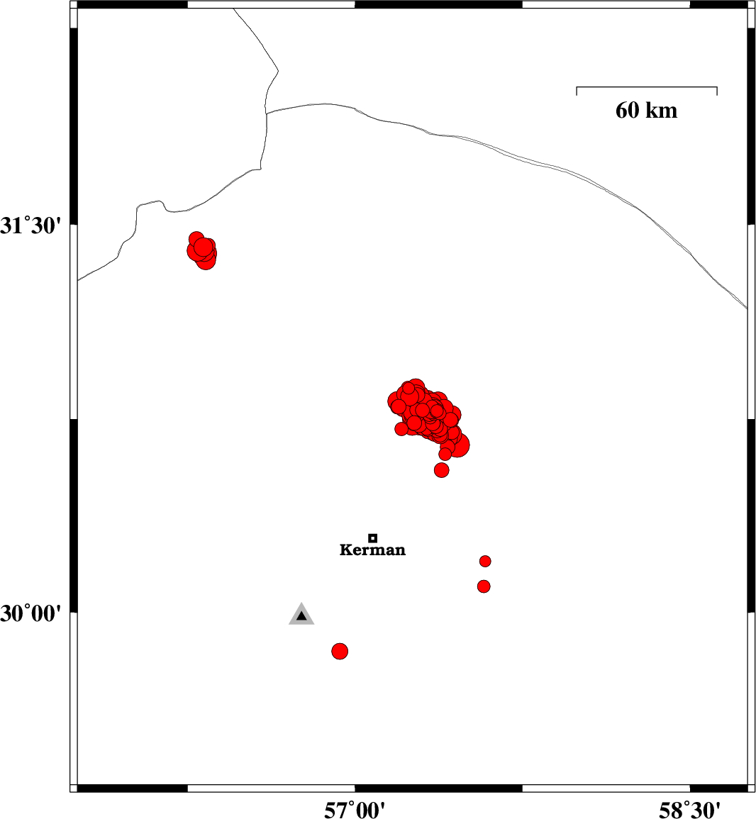 2017/12/04 02:50:05.5 06:20:05.5 30.70857.35118 ML:2.7 Kerman Province, 53 km North-East of Kerman