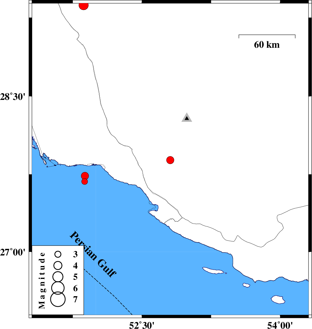 2017/12/27 | 00:34:04.9 | 04:04:04.9 | 27.735 | 51.882 | 17 | ML:3.6 | Persian Gulf, 20 km -West of Bandar-e kangan |