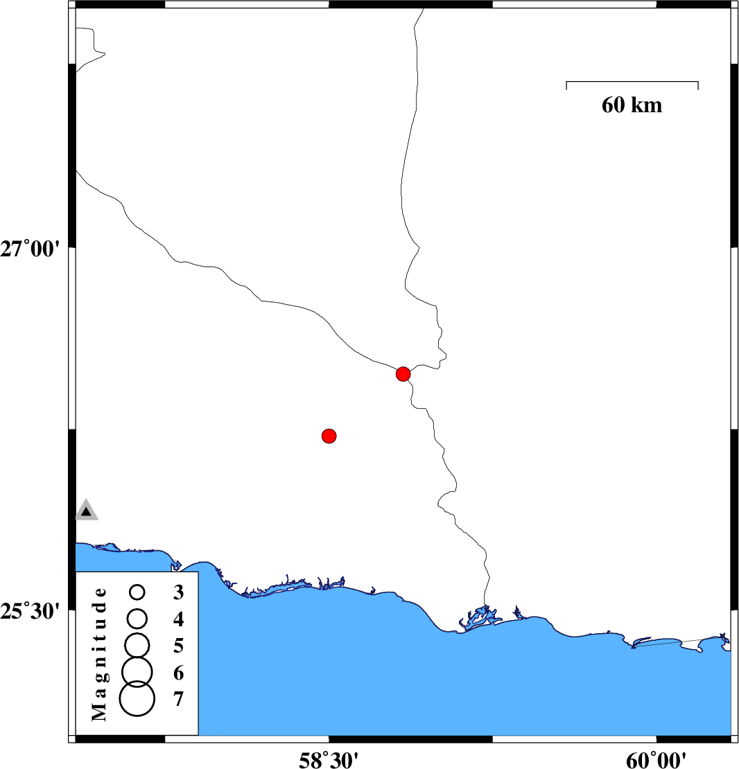 | 2018/01/02 | 07:24:16.2 | 10:54:16.2 | 26.478 | 58.84 | 14 | ML:2.9 | Hormozgan Province, 139 km North-West of Nikshahr |