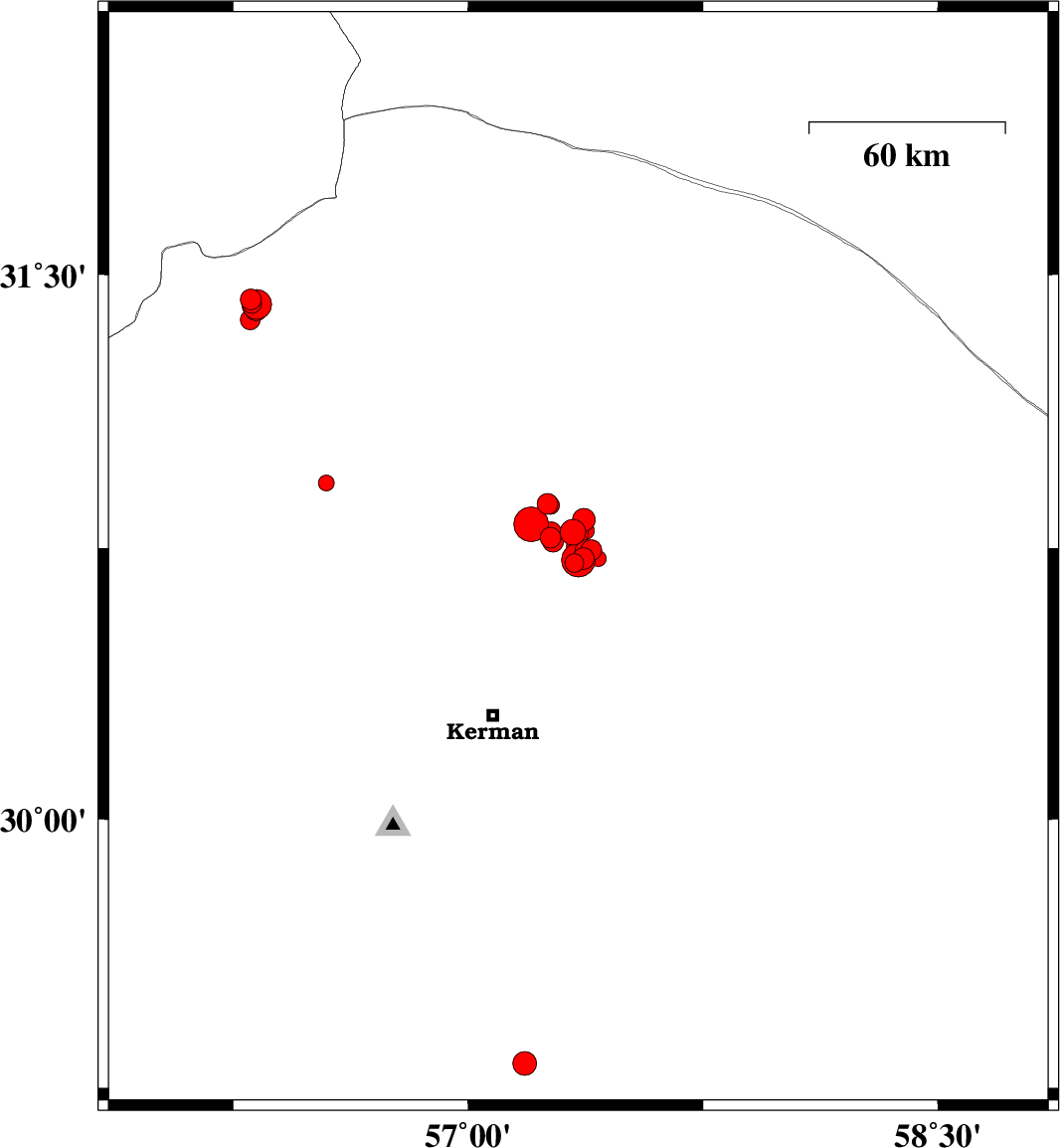 2017/12/27 10:13:09.7 13:43:09.7 30.75157.35714 ML:2.9 Kerman Province, 58 km North-East of Kerman