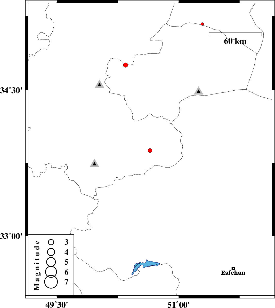 | 2018/01/04 | 09:17:43.0 | 12:47:43.0 | 33.88 | 50.648 | 9 | ML:2.2 | Markazi Province, 13 km South of Delijan | ||