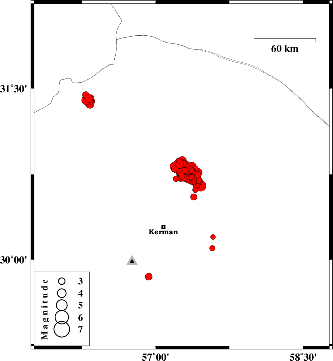 2017/12/01 03:35:00.5 07:05:00.5 30.75257.39916 ML:5.5 Kerman Province, 60 km North-East of Kerman