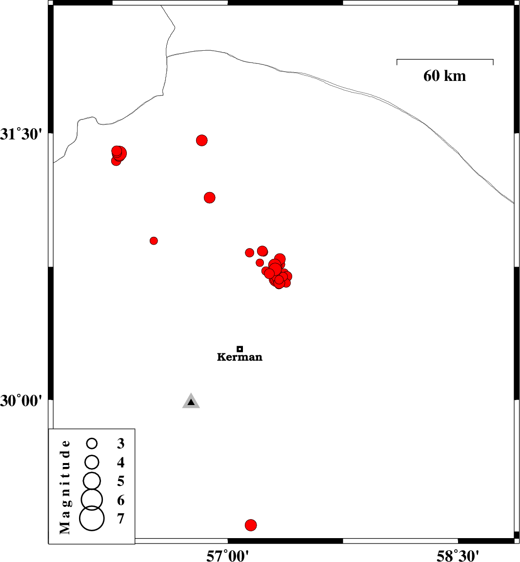 2018/01/04 13:05:29.0 16:35:29.0 30.7357.41514 ML:3 Kerman Province, 59 km North-East of Kerman