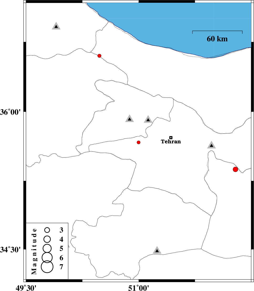 | 2018/01/07 | 21:25:28.1 | 00:55:28.1 | 36.601 | 50.477 | 14 | ML:2.1 | Mazandaran Province, 37 km South-West of Ramsar |
