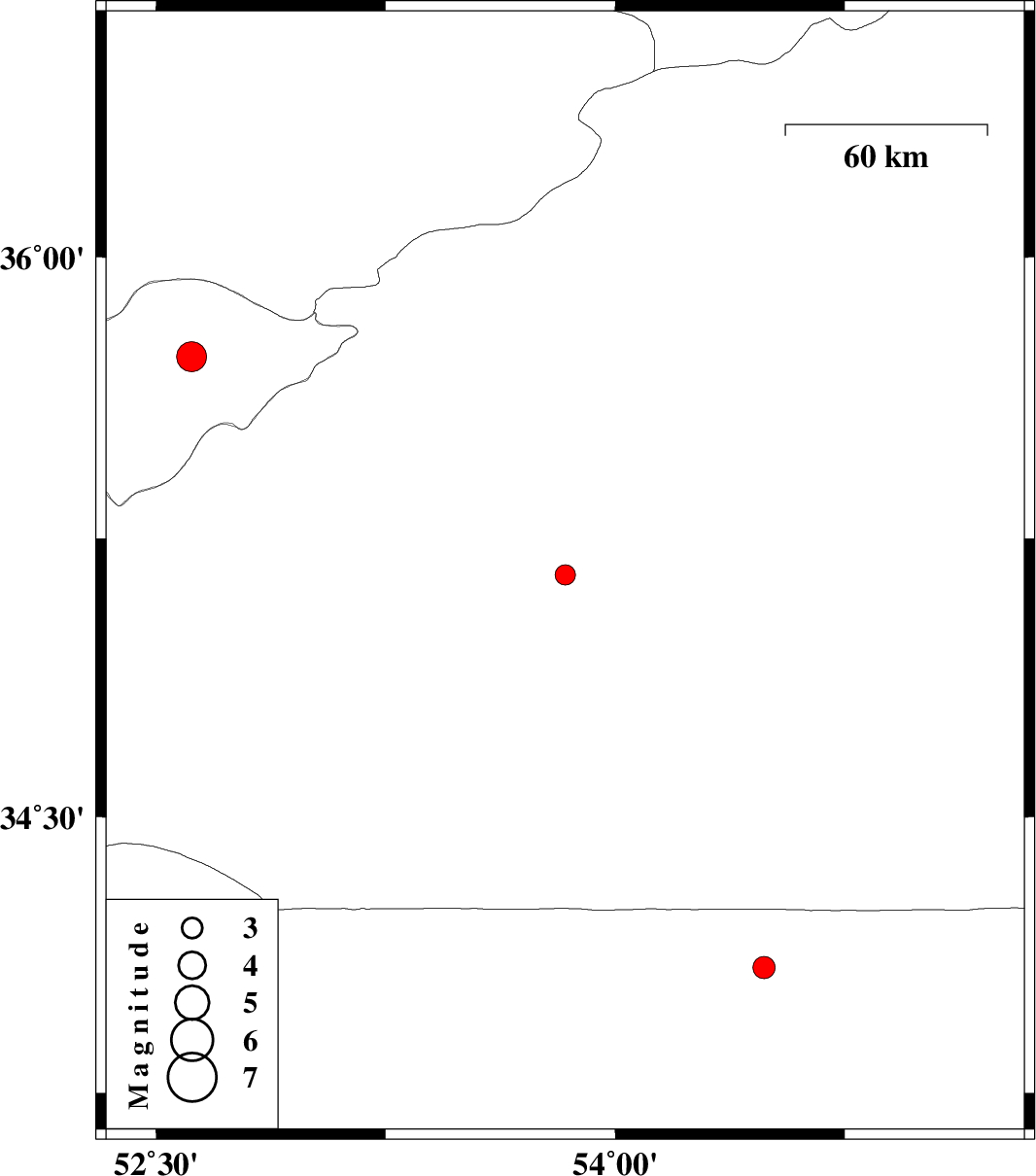 | 2018/01/15 | 02:08:04.7 | 05:38:04.7 | 35.152 | 53.837 | 17 | ML:3 | Semnan Province, 61 km South-East of Semnan |
