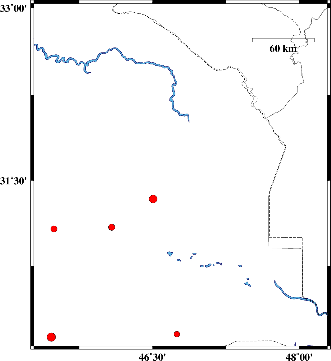 | 2018/01/15 | 22:06:37.5 | 01:36:37.5 | 31.689 | 46.871 | 14 | ML:3 | Iraq | ||