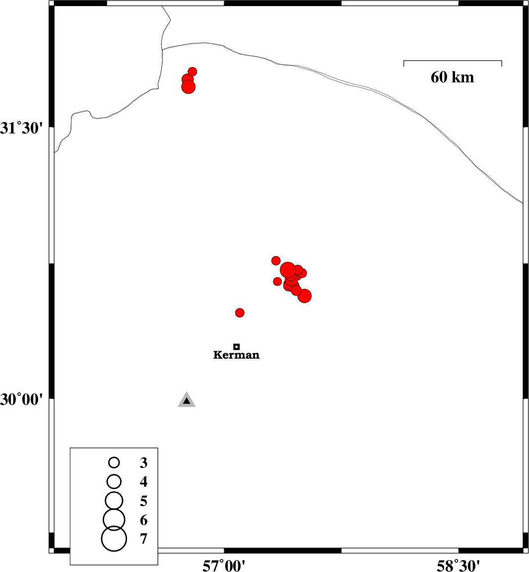2018/01/29 01:07:23.7 04:37:23.7 30.77757.36414 ML:2.7 Kerman Province, 61 km North-East of Kerman