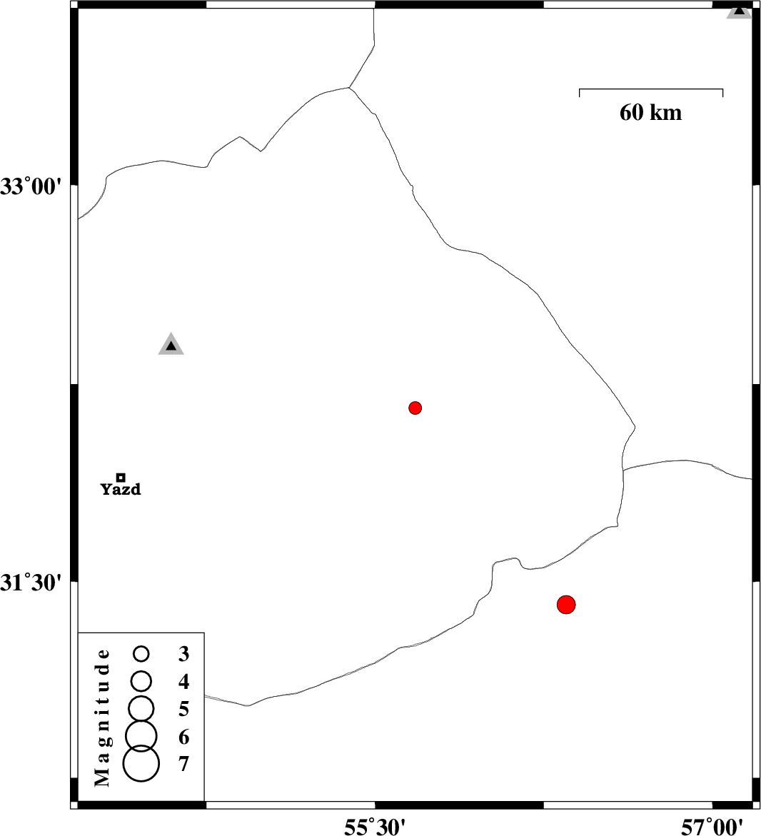 | 2018/02/06 | 05:43:05.8 | 09:13:05.8 | 31.412 | 56.35 | 14 | ML:3.6 | Kerman Province, 47 km North-West of Ravar |