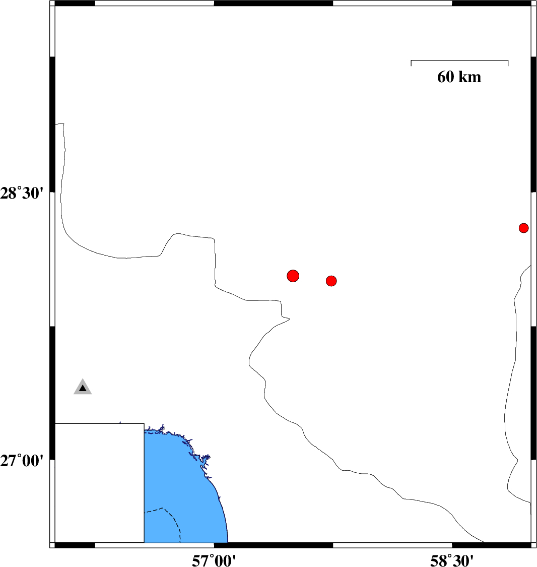 | 2018/02/08 | 16:20:55.4 | 19:50:55.4 | 28.004 | 57.738 | 18 | ML:2.9 | Kerman Province, 7 km of Kahnuj |