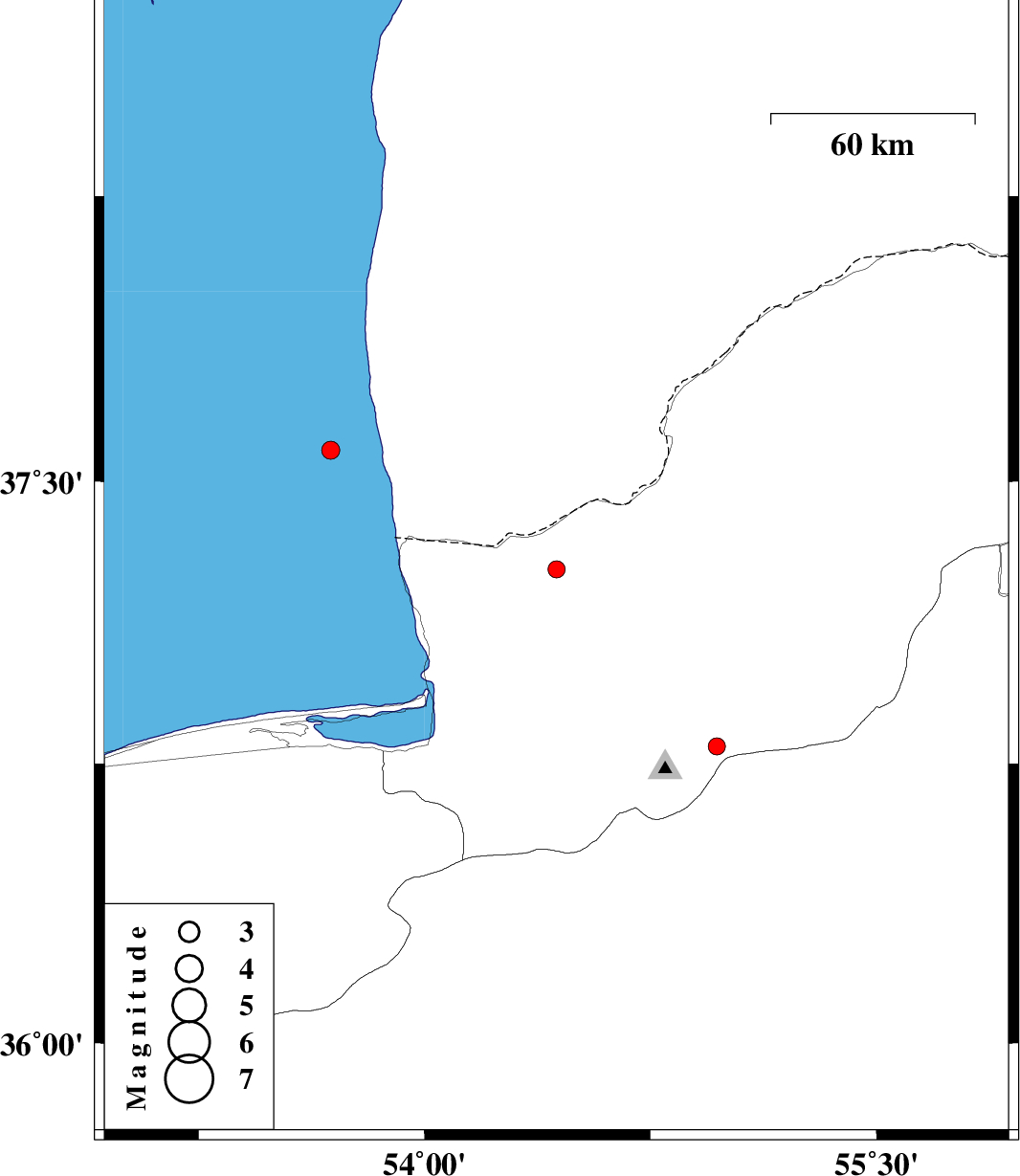 | 2018/01/12 | 23:42:21.4 | 03:12:21.4 | 36.795 | 54.97 | 14 | ML:2.5 | Golestan Province, 15 km South-East of Ali Abad |