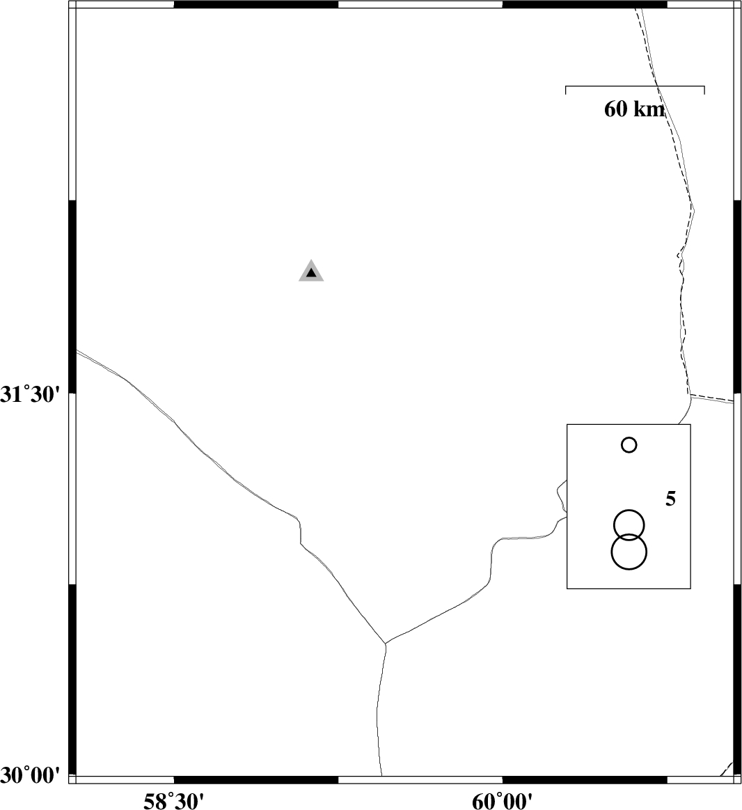 Map Region : lat:29.992-32.992 lon:58.053-61.053