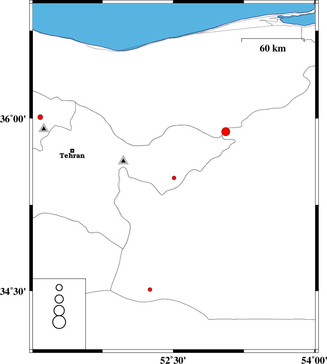 2018/01/22 | 05:33:20.4 | 09:03:20.4 | 36.01 | 51.09 | 14 | ML:2.4 | Tehran Province, 26 km North-East of Karaj |