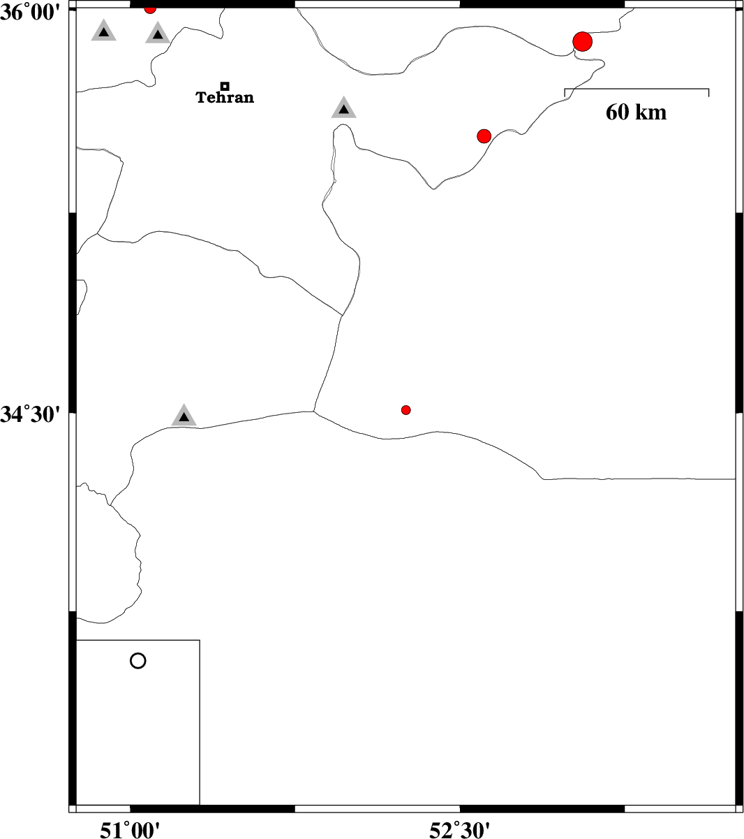 | 2018/01/22 | 05:33:20.4 | 09:03:20.4 | 36.01 | 51.09 | 14 | ML:2.4 | Tehran Province, 26 km North-East of Karaj | ||