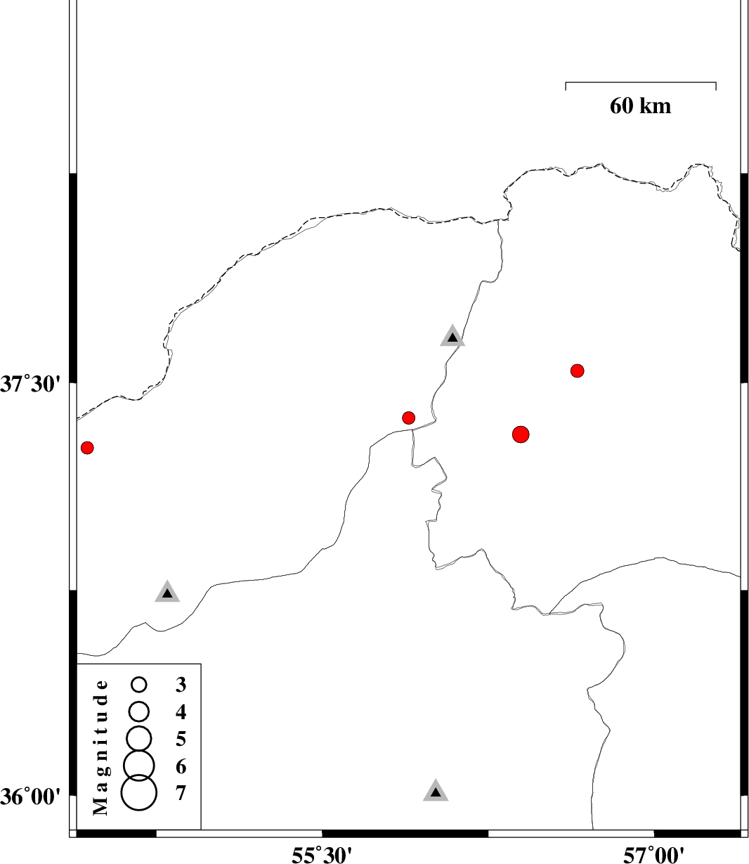 | 2018/02/14 | 19:57:58.4 | 23:27:58.4 | 37.374 | 55.89 | 15 | ML:2.5 | Golestan Province, 35 km -East of Kalaleh | ||