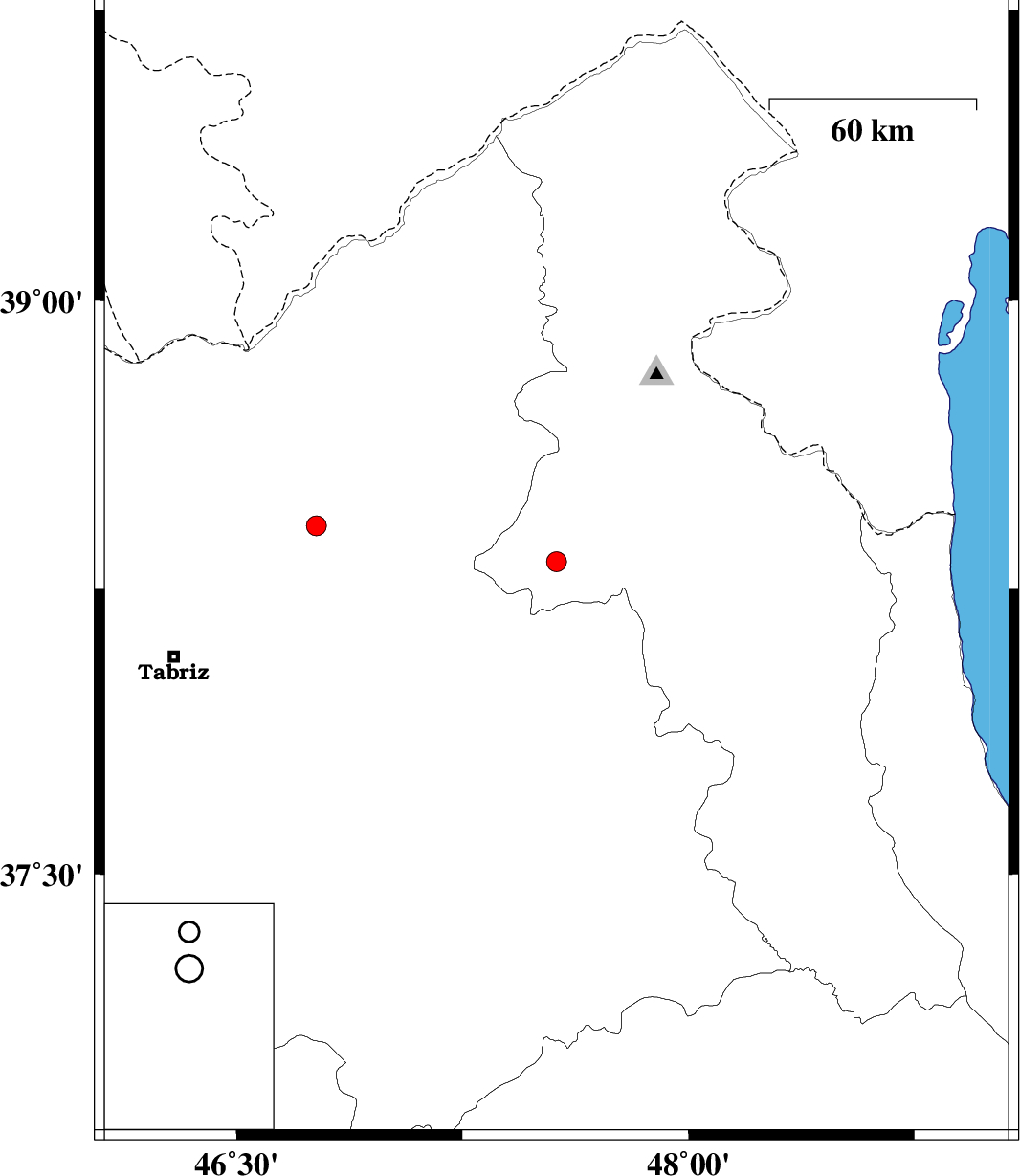 | 2018/02/18 | 22:49:11.2 | 02:19:11.2 | 38.321 | 47.562 | 14 | ML:2.9 | Ardebil Province, 13 km -West of Meshgin Shahr | ||