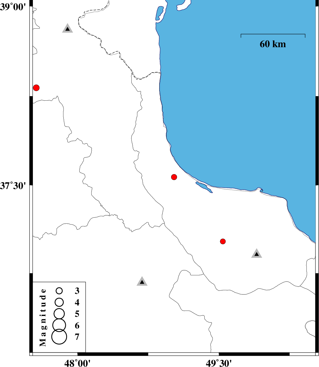 | 2018/02/05 | 00:33:20.4 | 04:03:20.4 | 37.022 | 49.542 | 15 | ML:2.5 | Gilan Province, 20 km South-East of Shaft |