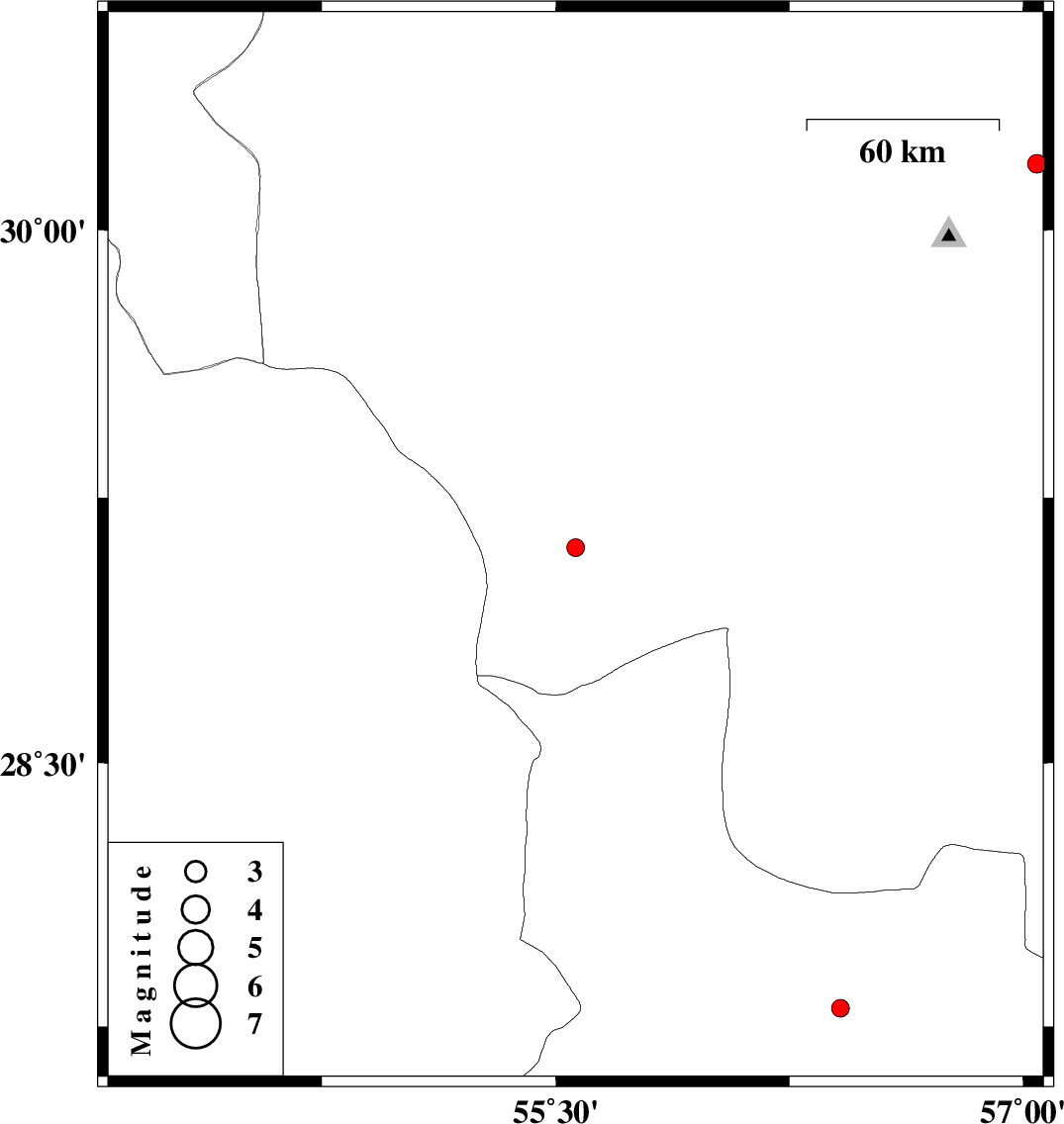 | 2018/02/23 | 02:50:26.8 | 06:20:26.8 | 30.185 | 57.044 | 18 | ML:2.7 | Kerman Province, 12 km South of Kerman |