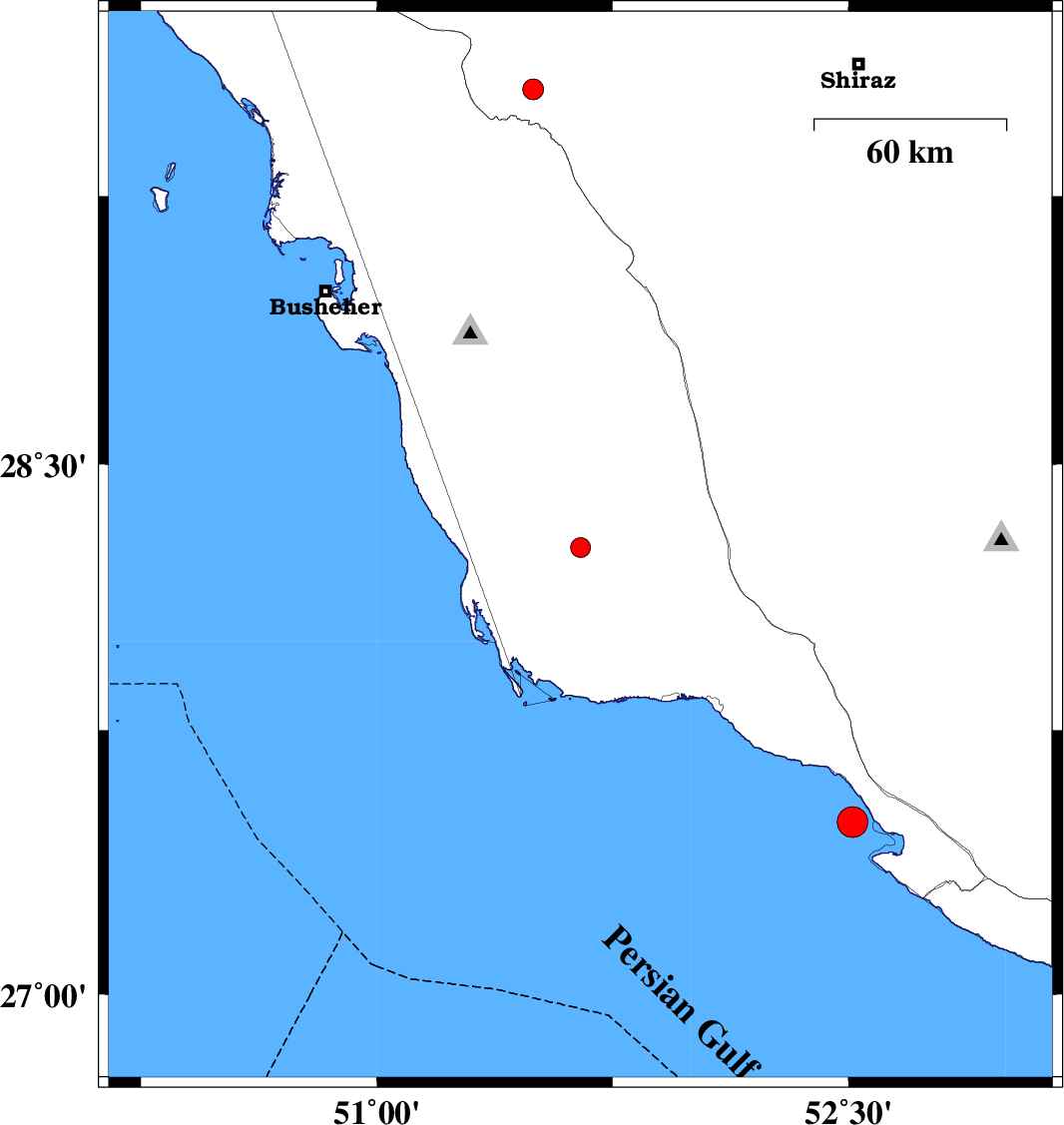 | 2018/02/25 | 16:35:59.4 | 20:05:59.4 | 27.489 | 52.514 | 15 | ML:4.4 | Persian Gulf, 37 km -West of Mehr |