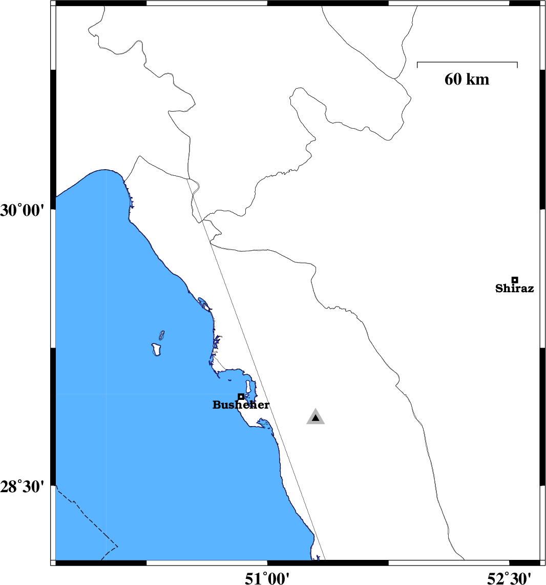 | 2018/01/22 | 13:37:12.5 | 17:07:12.5 | 29.591 | 51.188 | 15 | ML:3.3 | Bushehr Province, 37 km North of Borazjan | ||