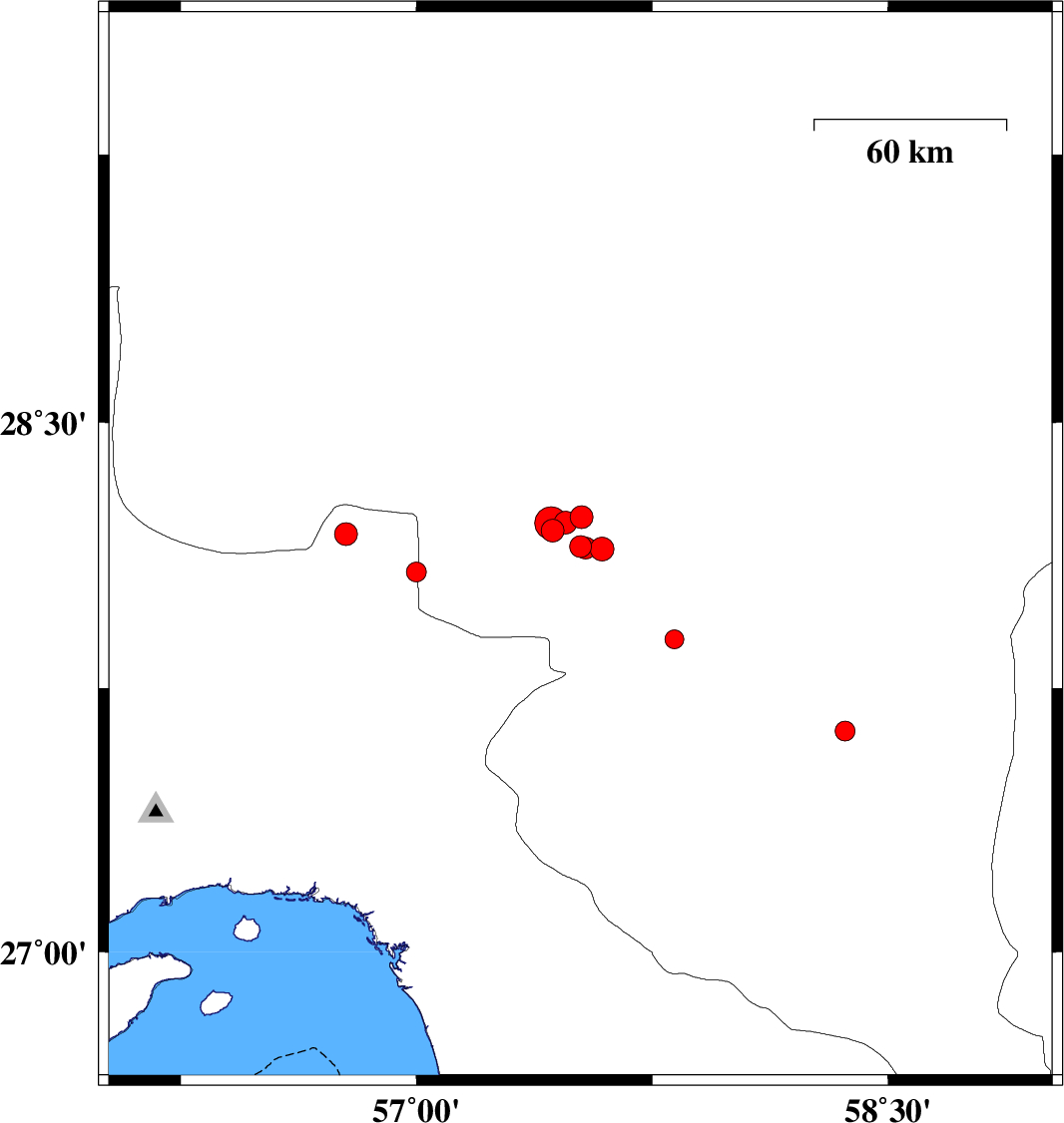 2018/03/06 00:04:47.5 03:34:47.5 27.62858.36415 ML:2.8 Kerman Province, 75 km South-East of Kahnuj