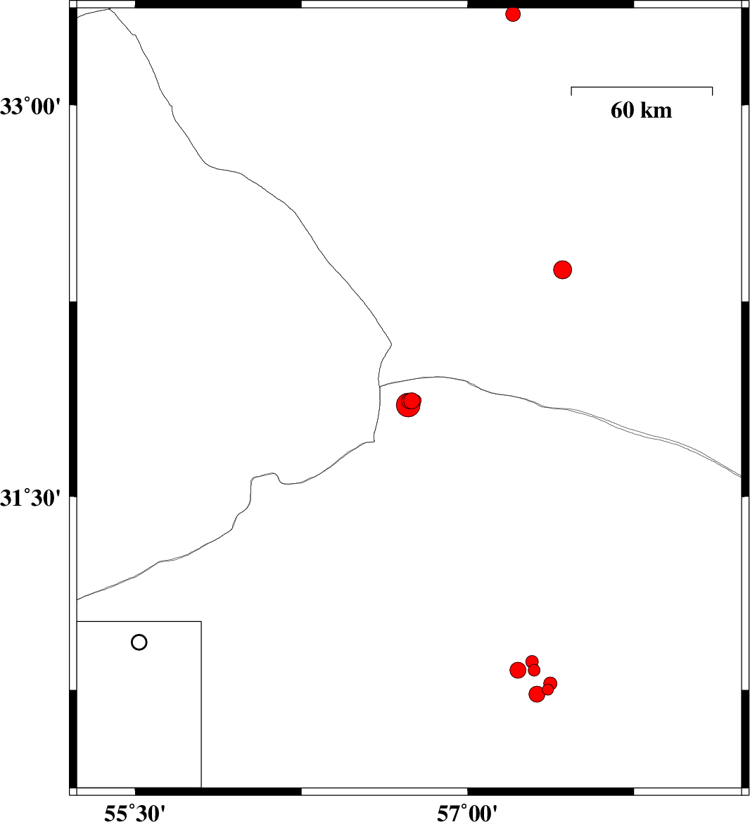 2018/03/10 15:54:39.5 19:24:39.5 30.73457.31214 ML:3.2 Kerman Province, 54 km North-East of Kerman