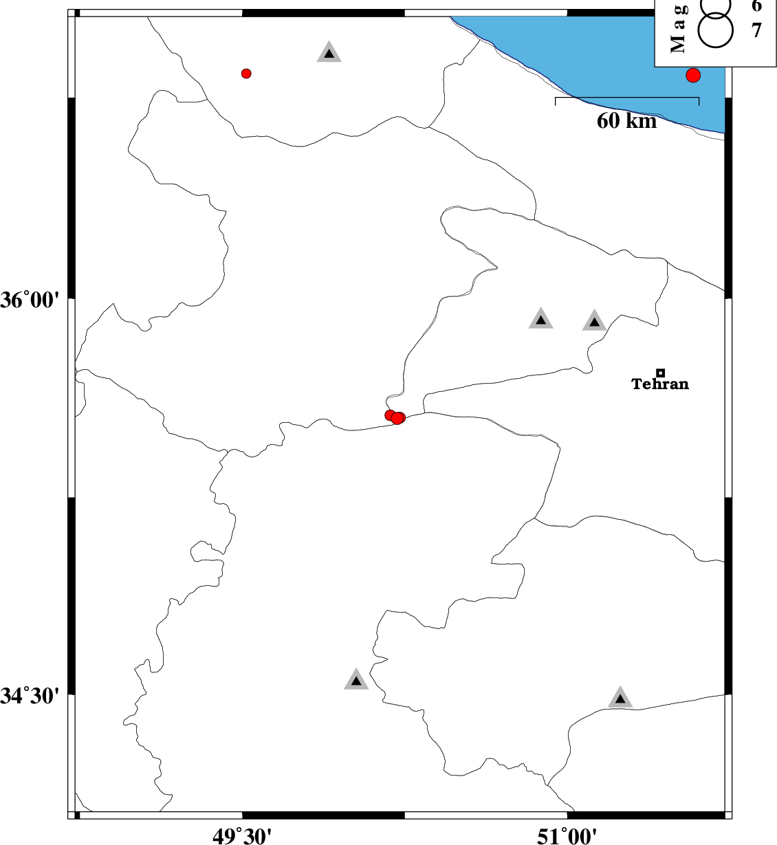 2018/04/06 | 17:36:56.6 | 22:06:56.6 | 36.833 | 51.581 | 6 | ML:2.9 | Caspian Sea, 22 km North of Nowshahr | ||