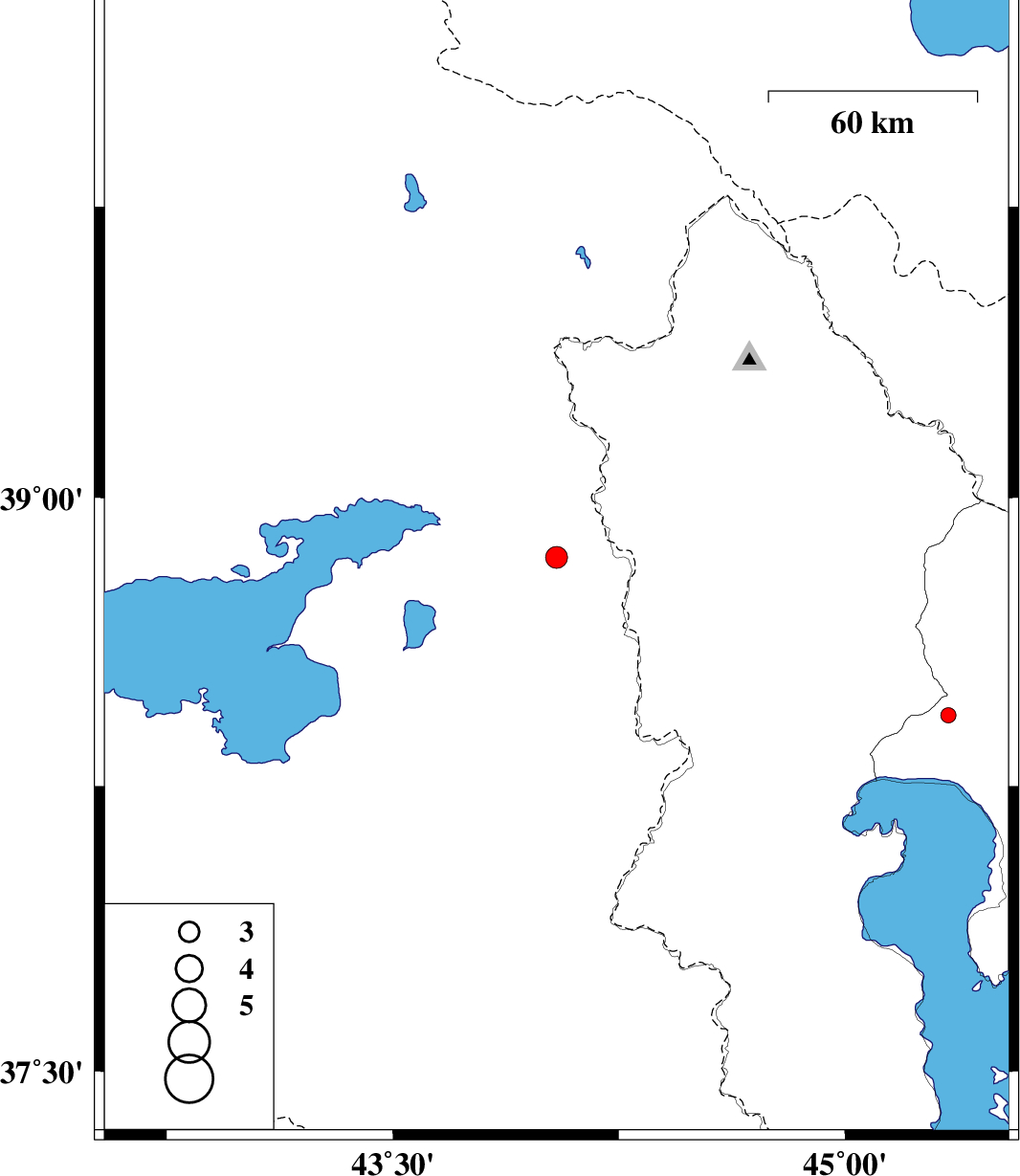 2018/04/06 19:14:13.5 23:44:13.5 38.84544.04314 ML:3.2 Turkey, 40 km South-West of Seyah Cheshmah