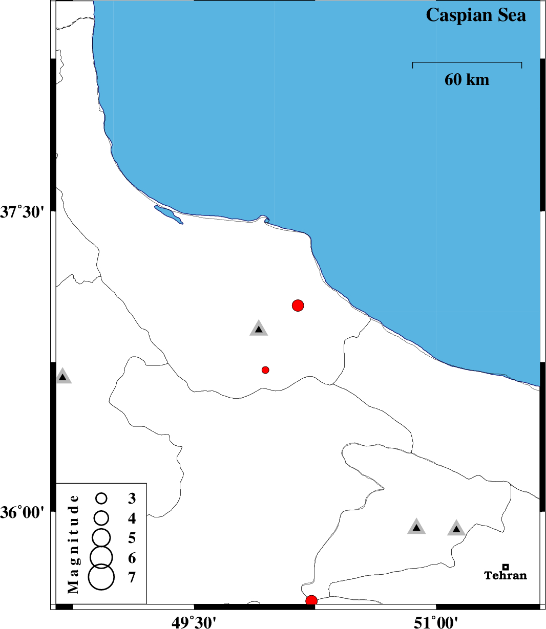 | 2018/04/13 | 11:48:37.3 | 16:18:37.3 | 36.71 | 49.942 | 17 | ML:2 | Gilan Province, 50 km North of Qazvin |