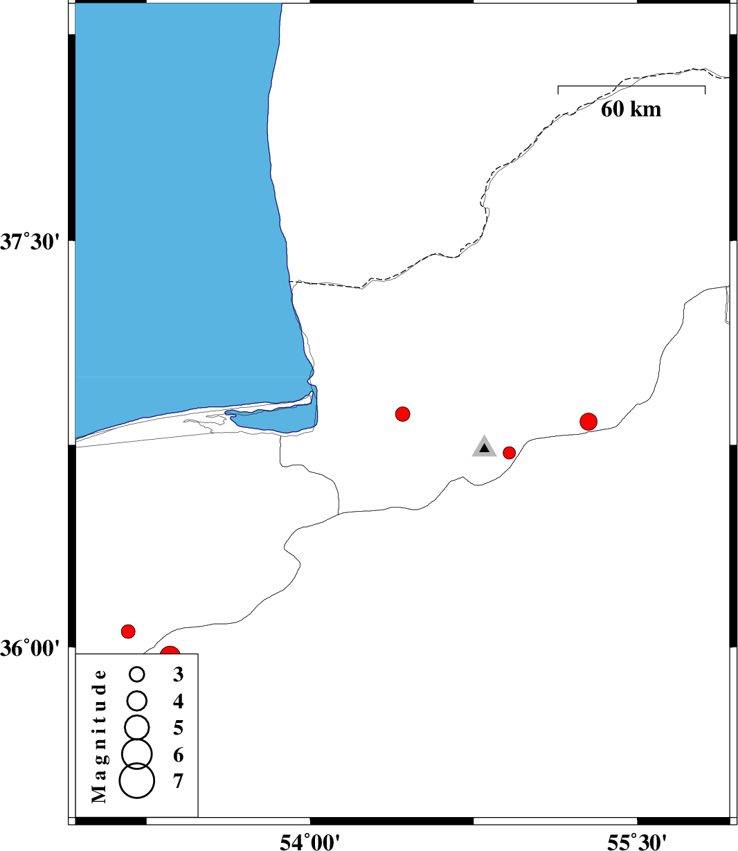 | 2018/04/23 | 22:20:59.3 | 02:50:59.3 | 36.863 | 54.424 | 14 | ML:2.9 | Golestan Province, 3 km of Gorgan | ||