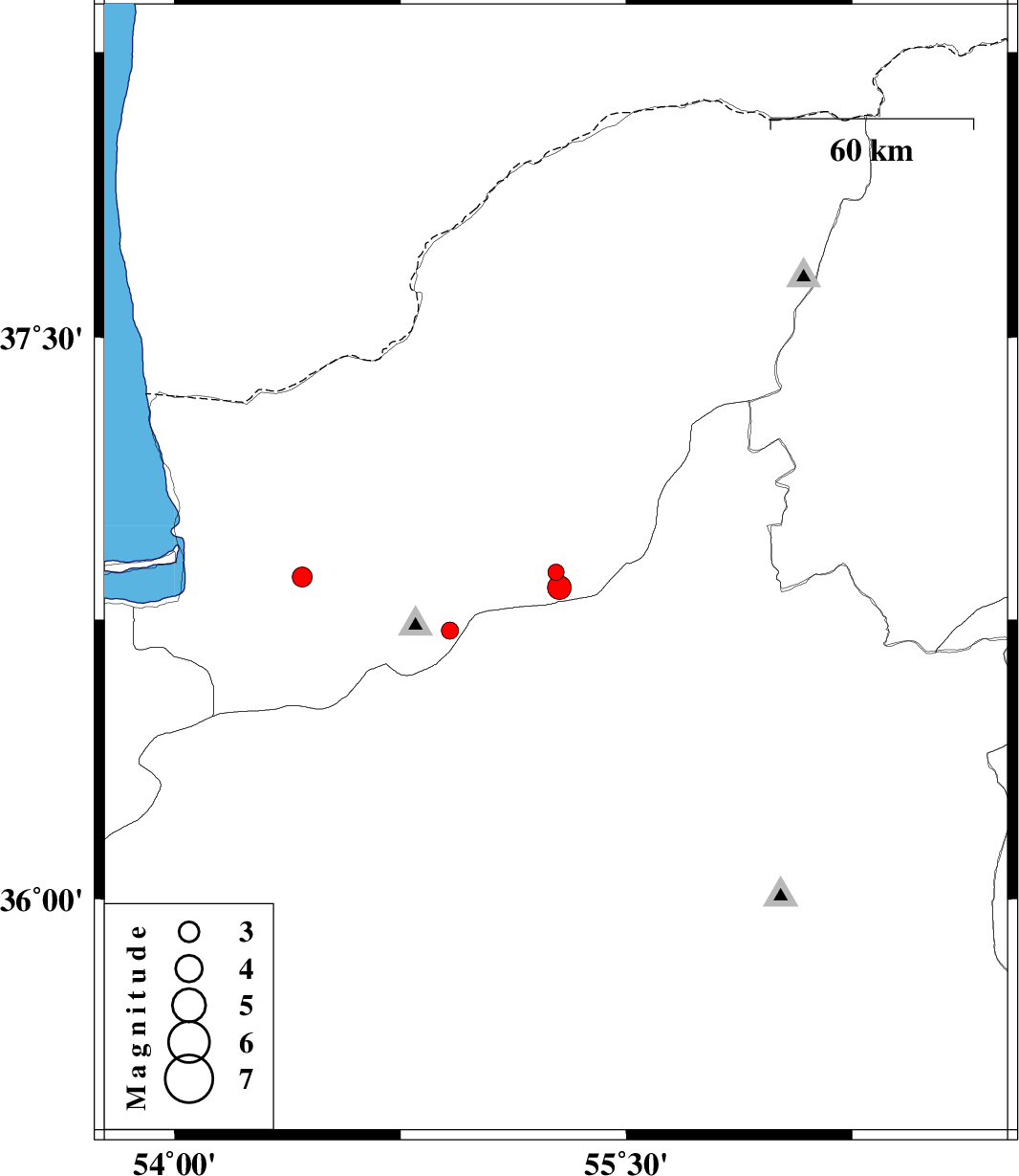 | 2018/04/10 | 19:38:52.7 | 00:08:52.7 | 36.836 | 55.277 | 14 | ML:3.5 | Golestan Province, 23 km South-East of Ramian |
