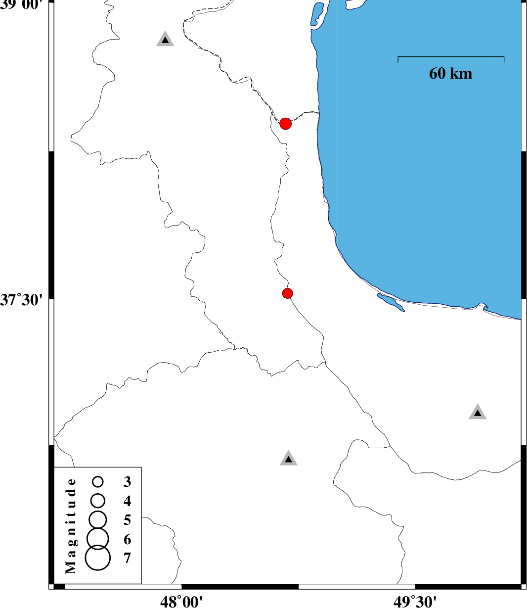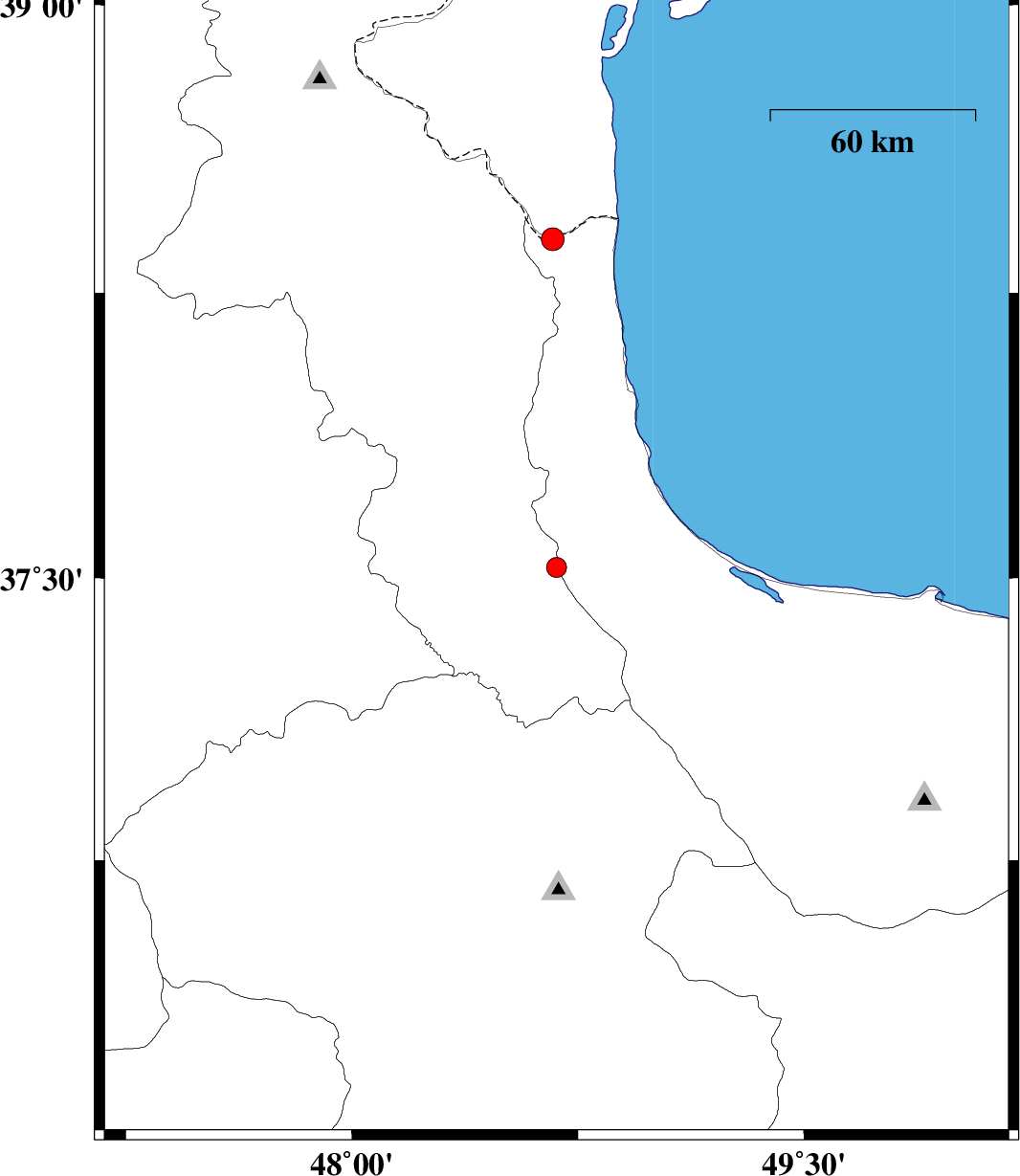 | 2018/04/23 | 13:08:04.1 | 17:38:04.1 | 38.39 | 48.667 | 15 | ML:3.4 | Gilan Province, 17 km -West of Astara |