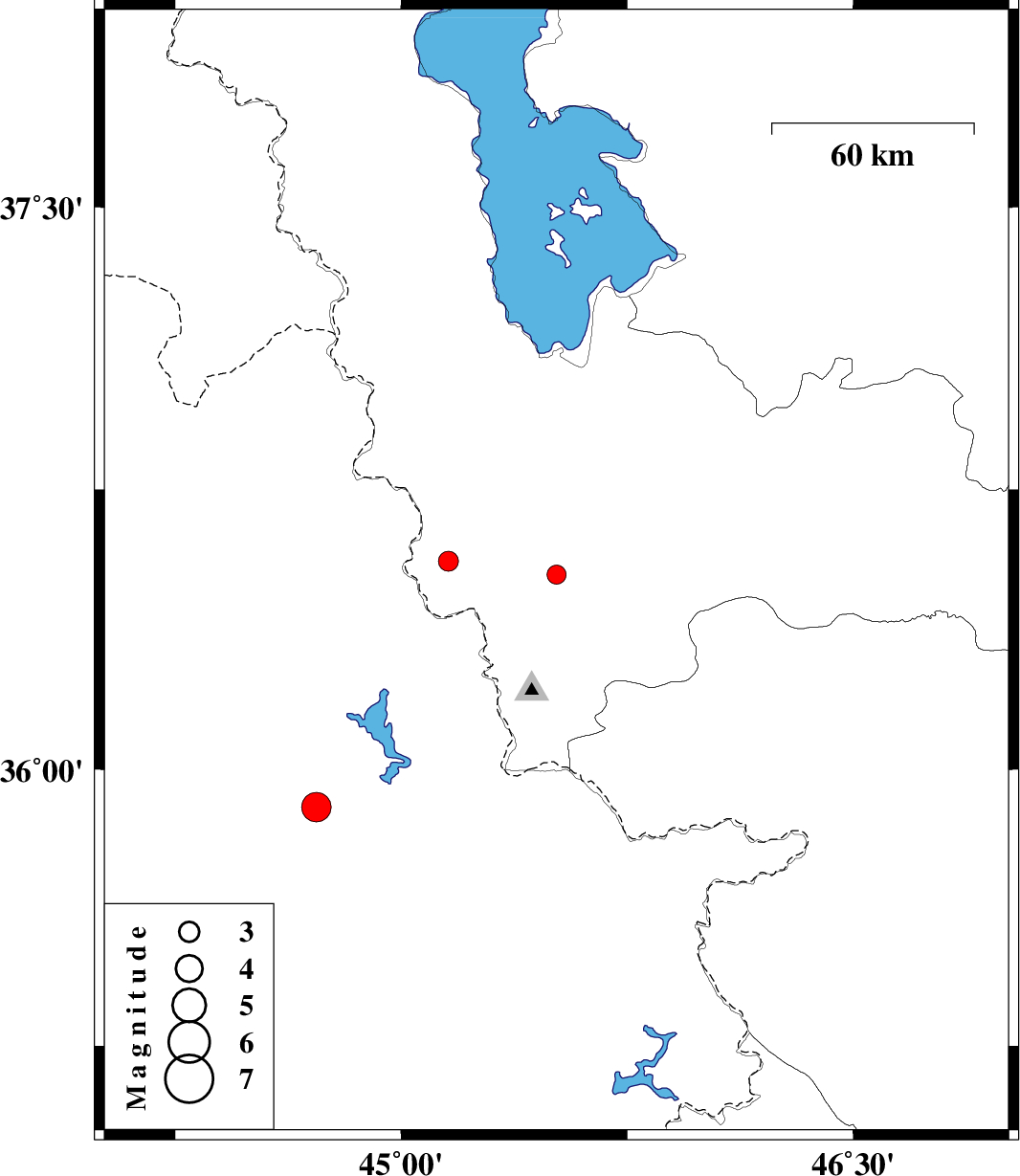 | 2018/04/16 | 04:30:37.1 | 09:00:37.1 | 35.898 | 44.718 | 15 | ML:4.4 | Iraq, 73 km South-West of Sardasht | ||