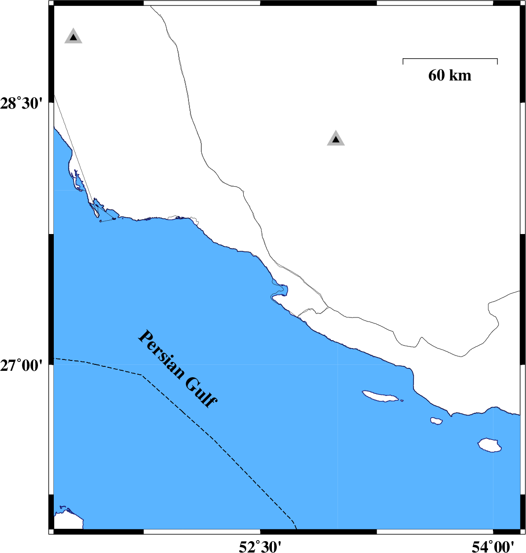 Bushehr Province, 14 km North of Bandar-e kangan | |