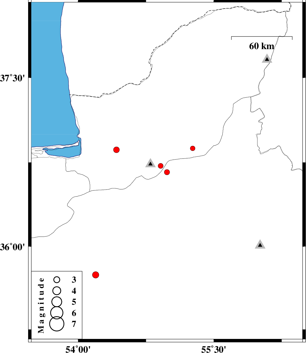 | 2018/05/12 | 09:15:28.9 | 13:45:28.9 | 36.663 | 54.982 | 14 | ML:2.7 | Semnan Province, 27 km North of Shahrud | ||
