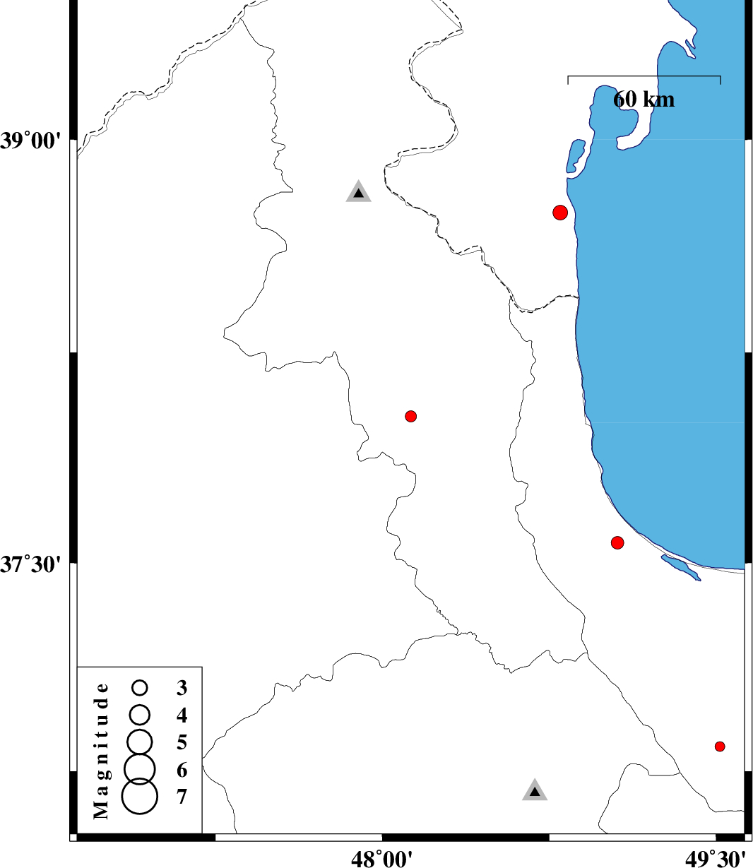 | 2018/03/12 | 13:10:04.3 | 16:40:04.3 | 38.744 | 48.8 | 14 | ML:3 | Azerbaijan, 36 km North of Astara |