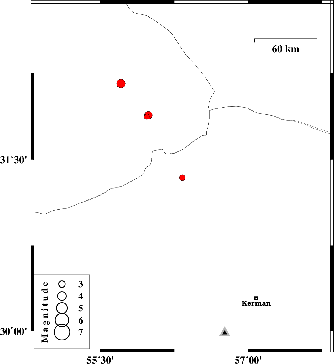 | 2018/05/15 | 00:55:20.9 | 05:25:20.9 | 31.87 | 55.972 | 14 | ML:2.4 | Yazd Province, 62 km North-East of Bafq | ||
